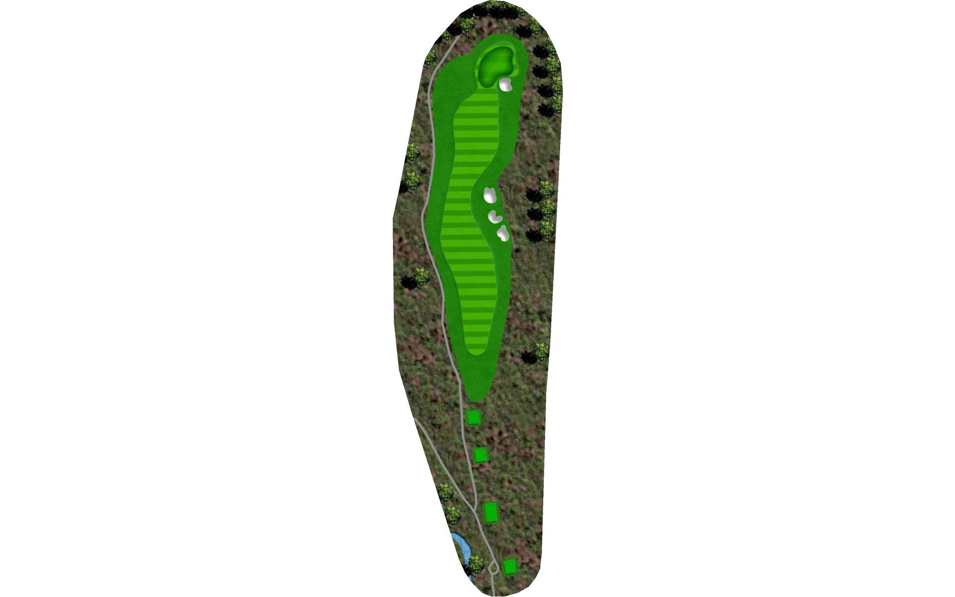 | A tee shot that lands near the 150 post will allow players to miss the fairway bunkers on the right and be left with the best approach. The green slopes back-to-front and left-to-right. |